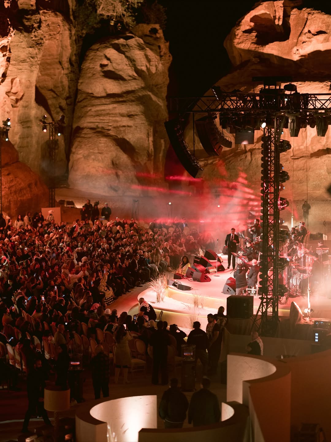 Set against the dramatic Nabataean rock formations, the concert delivered an exceptional live performance by the “Caesar of Arabic Song,” creating a truly magical experience under the Petra night sky. Guests arrived early to explore the Little Petra area, enjoy pre-show ambiance, and settle into the natural amphitheater carved into sandstone.